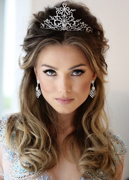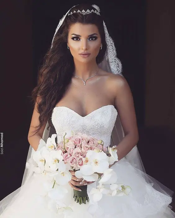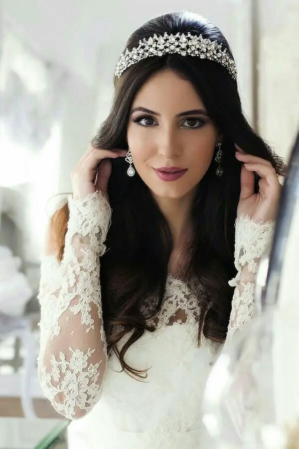 53 Penteados para Noivas Cabelo Solto com tiara e véu