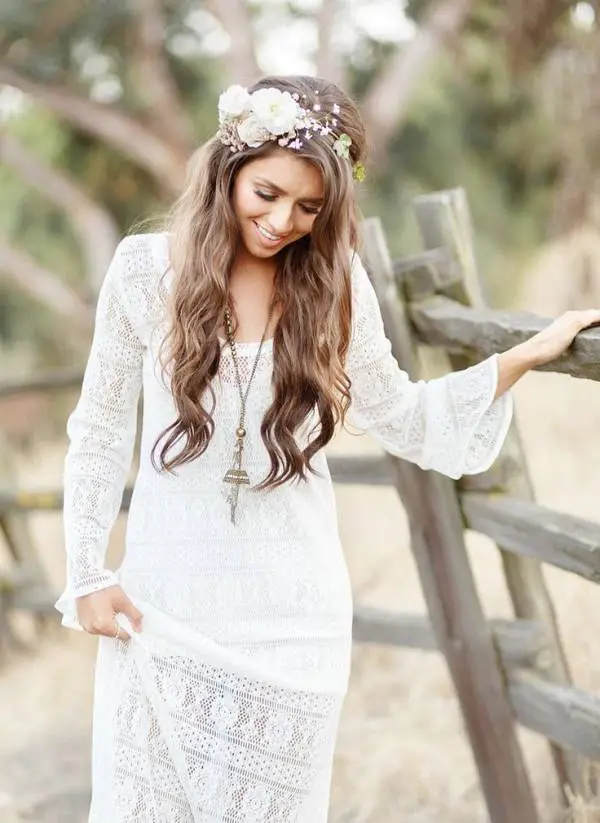 Para dar um toque despojado aos cabelos soltos as mechas esvoaçantes e com volume traz um efeito glamoroso aos cabelos. Para as noivinhas que preferem usar os fios soltos na cerimônia existem opções com véu, tiara ou grampos que fogem do básico. Outra ideia é você usar uma pequena tiara e os cachos soltos, coroa de flor estilo boho que super combina com casamentos no campo outra, ideia é o véu francês que traz uma elegância e beleza sem igual.