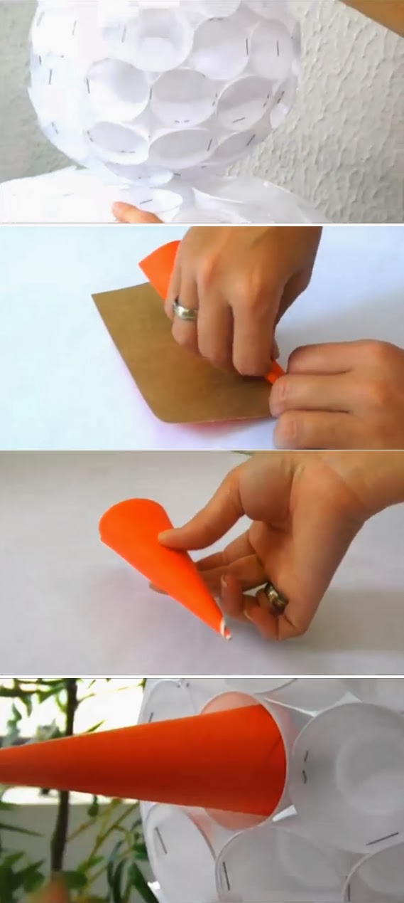 Vejam e surpreenda seus filhos e se você for professora este será um excelente item decorativo para sua sala de aula seus, alunos vão amar! Com ajuda de algumas imagens ilustrativas, vamos aprender a fazer o boneco de neve com copos descartáveis. É uma peça criativa, linda e que chama atenção de todos, que passam por perto sendo, uma maneira de reciclar copos descartáveis da festinho do seu filhote e assim, ajudar o meio ambiente além, de economizar um dinheiro é claro já que itens decorativos de natal estão cada vez mais caros então, vamos unir o útil ao agradável e fazer uma decoração lindíssima. Vejam o passo a passo lembre-se está pode ser uma boa ideia de atividade para trabalhar com as crianças pois, é bem mais fácil do que se parece você vai se adorar!!!