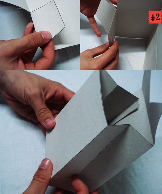 3- Com o molde já impresso é hora de começar a montagem, dobre as abas de linhas tracejadas logo sua caixa ganhará formato. Cole as extremidades e a parte de baixo da embalagem para não correr o risco do presente vazar no fundo.