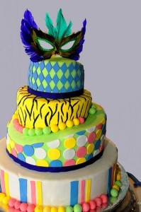 Bolo: Digamos que o bolo é um dos itens mais importantes de qualquer festa por isso, merece todo capricho e cuidado na hora da escolha. Escolha um modelo colorido com várias camadas e coberto com pasta americana enfeite-o com máscaras, cataventos brilhantes ou palhacinhos. E se quiser, espalhe confeitos coloridos de chocolate ficará lindíssimo e dará um toque todo especial as fotos.
