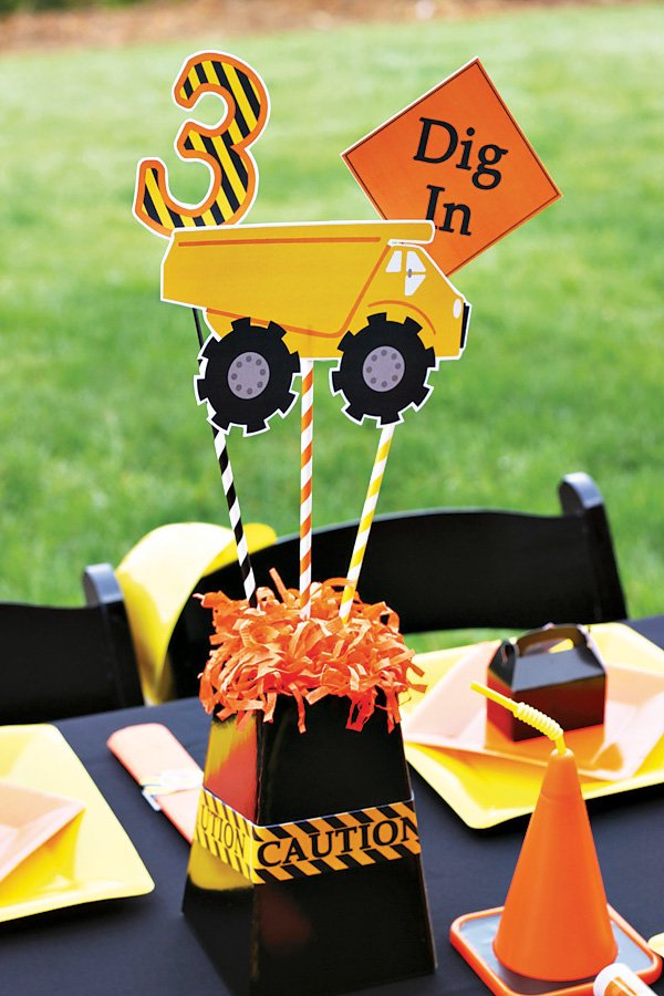 Para compor um decoração neste, tema você deve usar alguns símbolos bastante conhecidos nesta área como: tratores, placas, capacetes, cones, ferramentas, caminhões entre outros. A cartela de cores para este temas podem ser o amarelo, branco, preto e o laranja, essas cores quando combinadas deixam o ambiente muito mais alegre e descontraído.