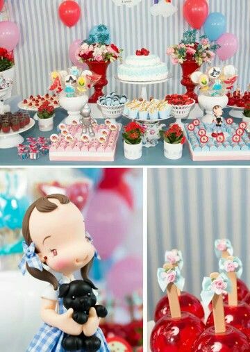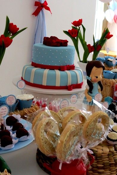 Quer uma festa com muita magia e emoção então, escolha o tem mágico de oz. O Mágico de Oz conta a história de Dorothy e seu cão Totó que moram numa fazenda. Após uma ventania, encontram-se no incrível mundo de Oz e a menina deve calçar os sapatos encantados para ir à procura do Mágico de Oz que poderá libertá-los. No meio do caminho, fez novos amigos. Este é um tema tradicional entre a criançada por isso, muitas mães optam por está decoração para comemorar o aniversário de seu filho(a) porém, sendo um tema para festa considerado mais feminino ele também, pode ser reformulado e usado para festinhas de meninos o que muda é apenas, os detalhes e enfeites que serão usados, além das cores é claro.