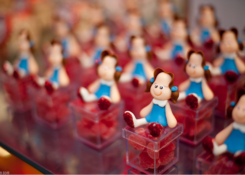 Sendo a personagem principal uma menina chamada Dorothy , ela será o centro da festa ou seja, os detalhes serão inspirados em sua personagem como: também em suas roupas, cores e é claro em seu sapatinho vermelho que é sua marca registrada!