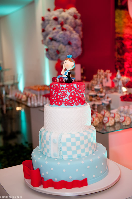 Use e abuse da criatividade itens como: painéis decorativos e arranjos florais são excelentes aliados para ajudar á criar um lindo efeito. O bolo pode ser feito em pasta americana com os personagens principais acima e cenário que imita o incrível mundo de Oz ou a fazenda na qual vive Dorothy. A opção com glacê pode ser feita em coloração esverdeada, representando a natureza, juntamente com os personagens no topo ou para as meninas existe, a opção de usar o sapato encantado no topo do bolo, fica incrível.