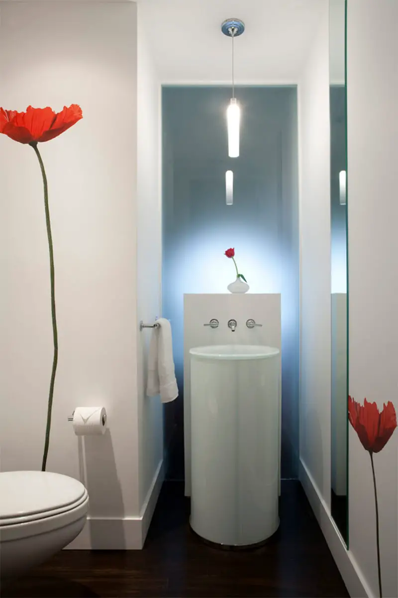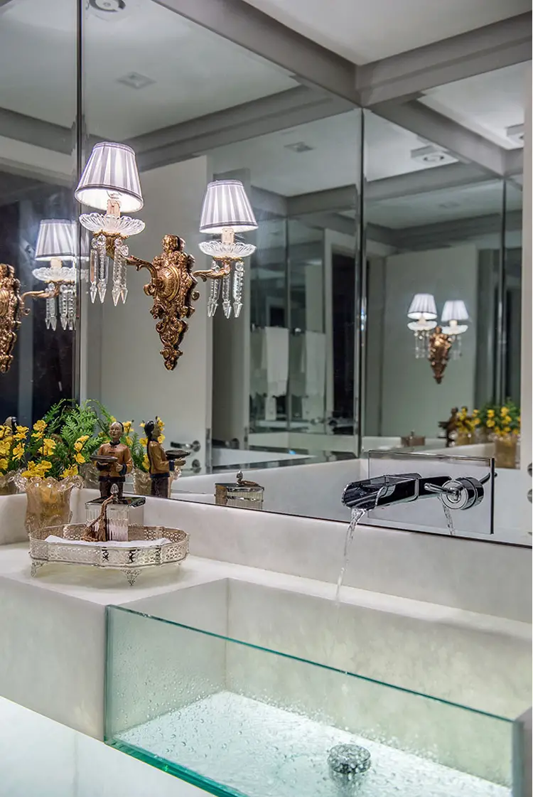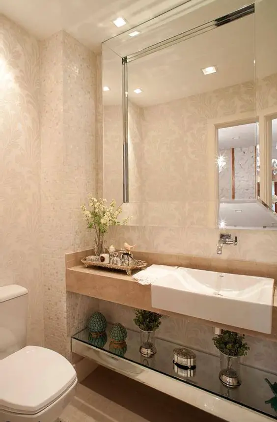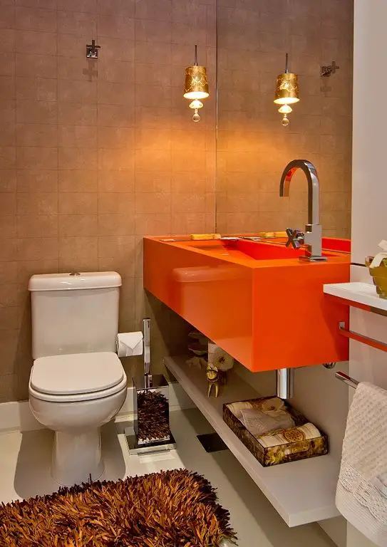 Tome cuidado com o exagero, as vezes menos é mais. A dica principal é tomar cuidado para não sobrecarregar o espaço com muitos móveis e enfeites para que ele não perca sua funcionalidade. Pra quem não sabe a diferença do lavabo para o banheiro é o chuveiro, o lavabo possui apenas, vaso sanitário, pia e o espelho, sendo assim você pode estar incrementando com vários itens decorativos como: vasos de flores, cestos, tapetes, espelhos enfim, itens que reforçaram a elegância do ambiente.