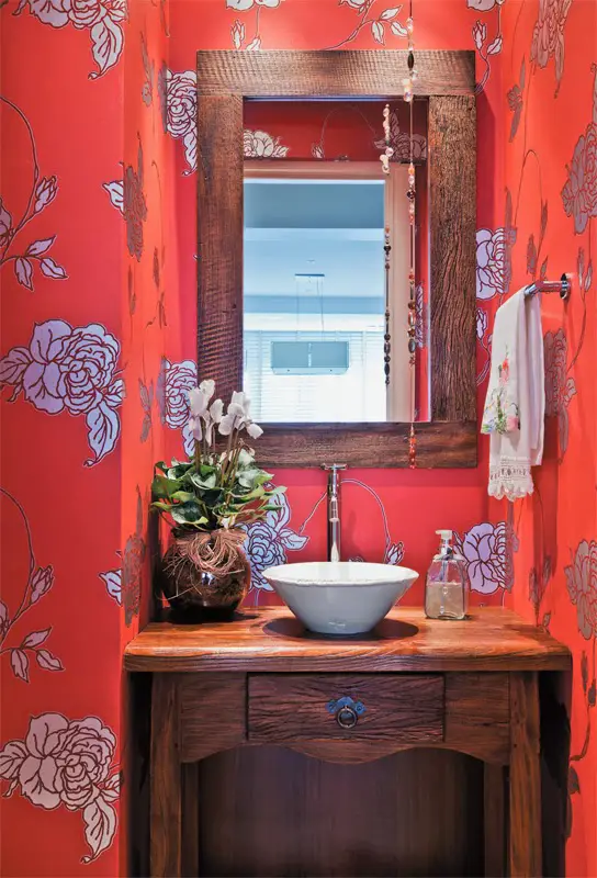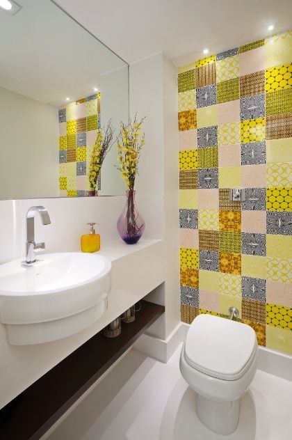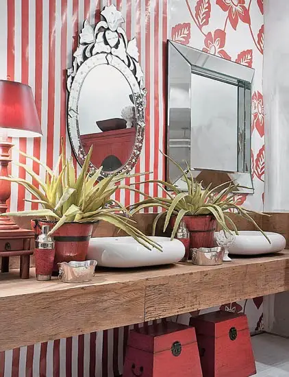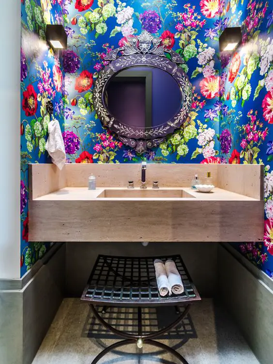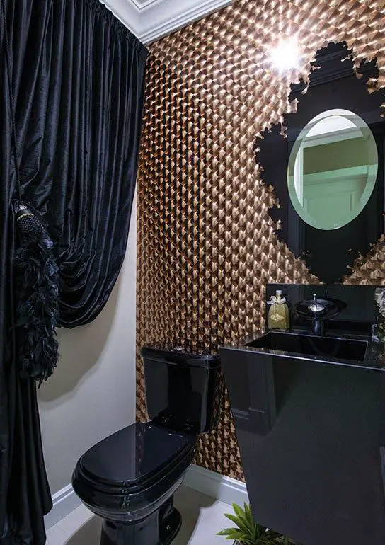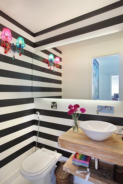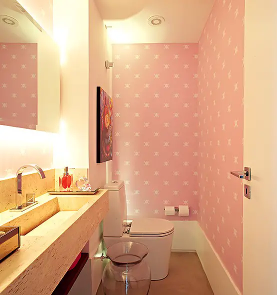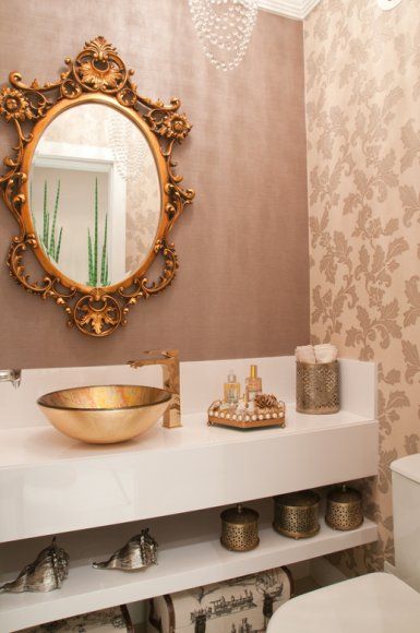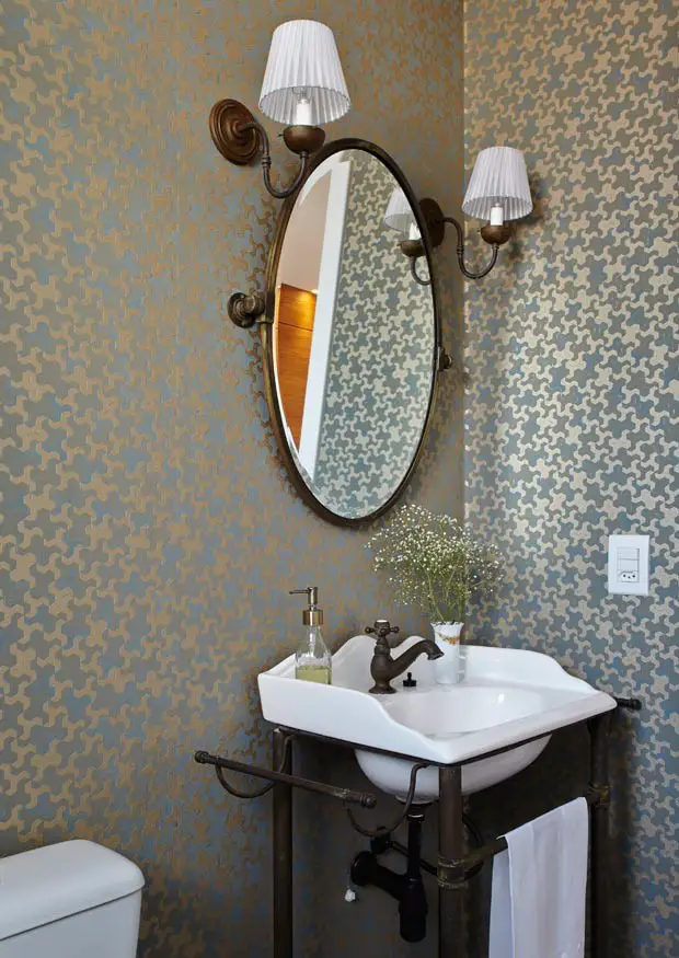 Os papéis de parede quando unido á espelhos ajuda a dar sensação de amplitude além, de trazer um ar refinado e moderno na decoração do lavabo. Não tenha receio de ousar na criatividade hoje, em dia existem muitas lojas físicas ou online que dispõem de diversos modelos com cores e texturas super bacanas!