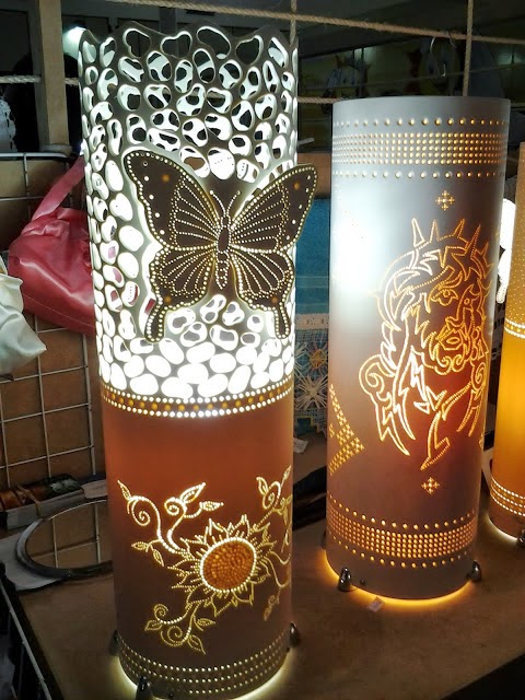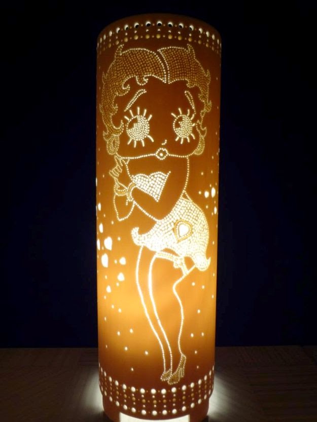 Para fazer este tipo de trabalho é preciso ter muita paciência afinal, são detalhes delicados que exigem dedicação e leveza. Os desenhos mais usados neste tipo de luminárias são: borboletas, flores, estrelas e para os mais devotos a nossa senhora aparecida.