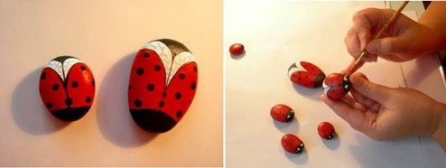 Passo a Passo de joaninhas pintadas em pedras: