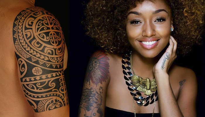 Os modelos mais escolhidos por mulheres e homens negros são: As tatuagens pretas sólidas e as tatuagens de líneas grossas. Confiram abaixo algumas sugestões em fotos!
