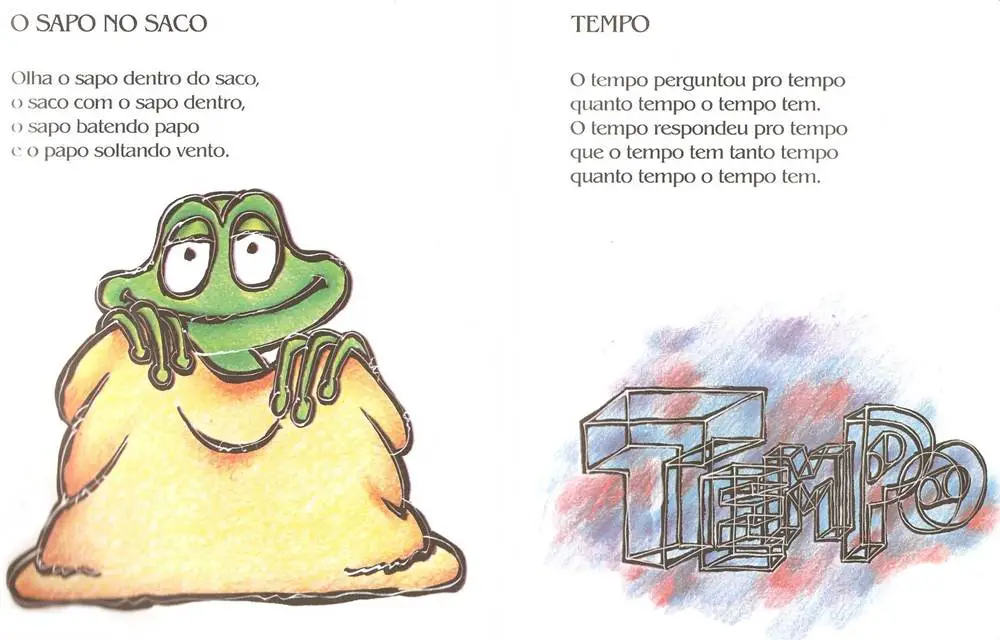 - Olha o sapo dentro do saco. O saco com o sapo dentro. O sapo batendo papo e o papo soltando o vento.