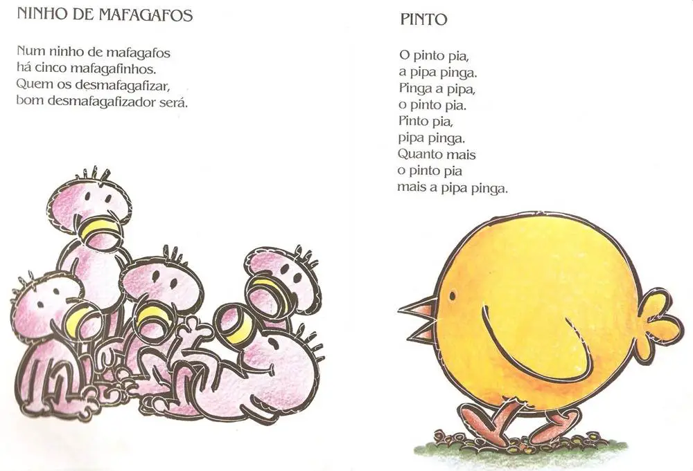 - Num ninho de mafagafos há sete mafagafinhos. Quando a mafagafa gafa, gafam os sete mafagafinhos.
