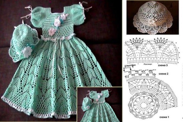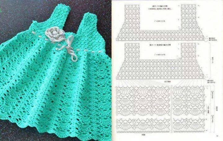 Vestido de Crochê infantil com Gráficos – Passo a passo